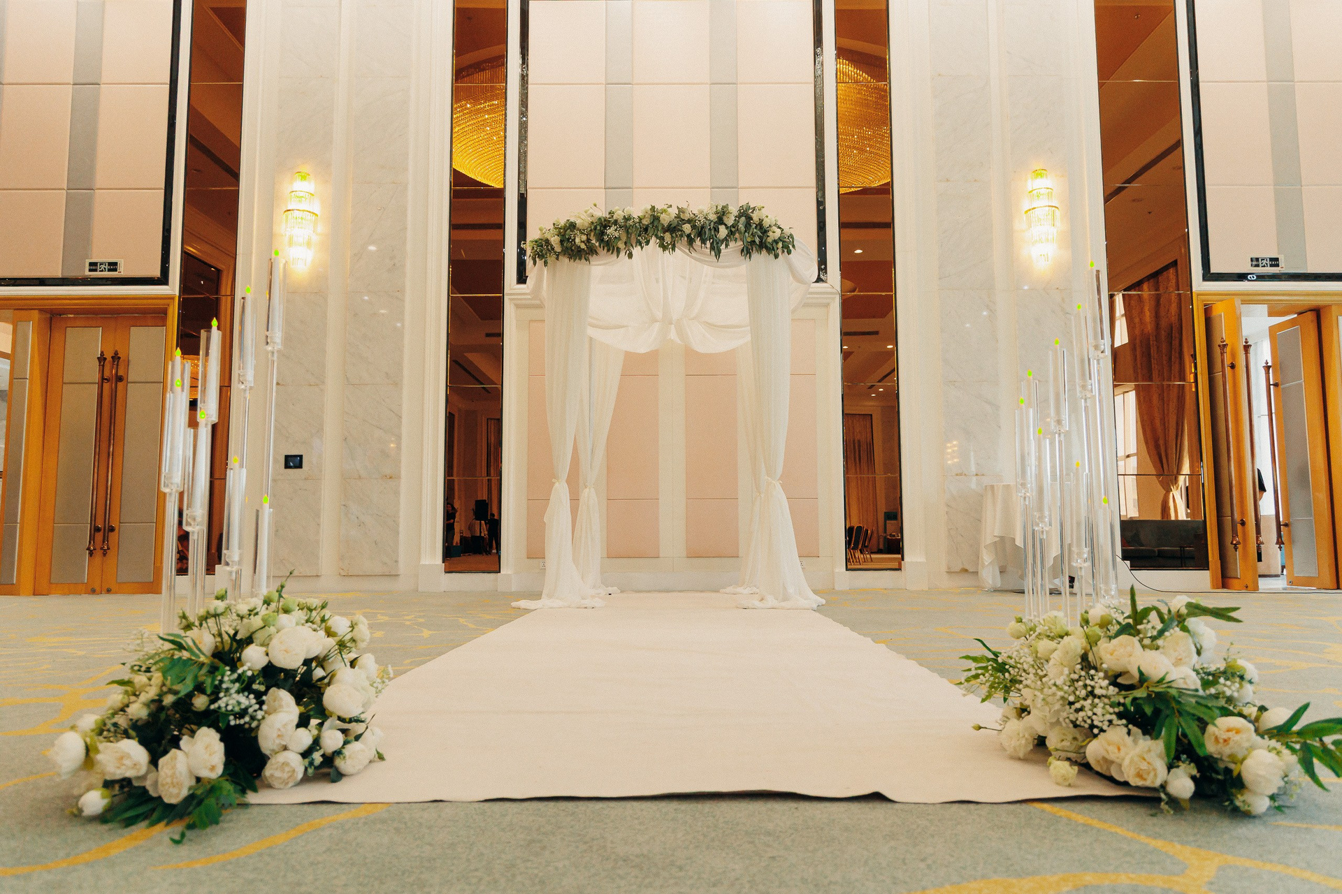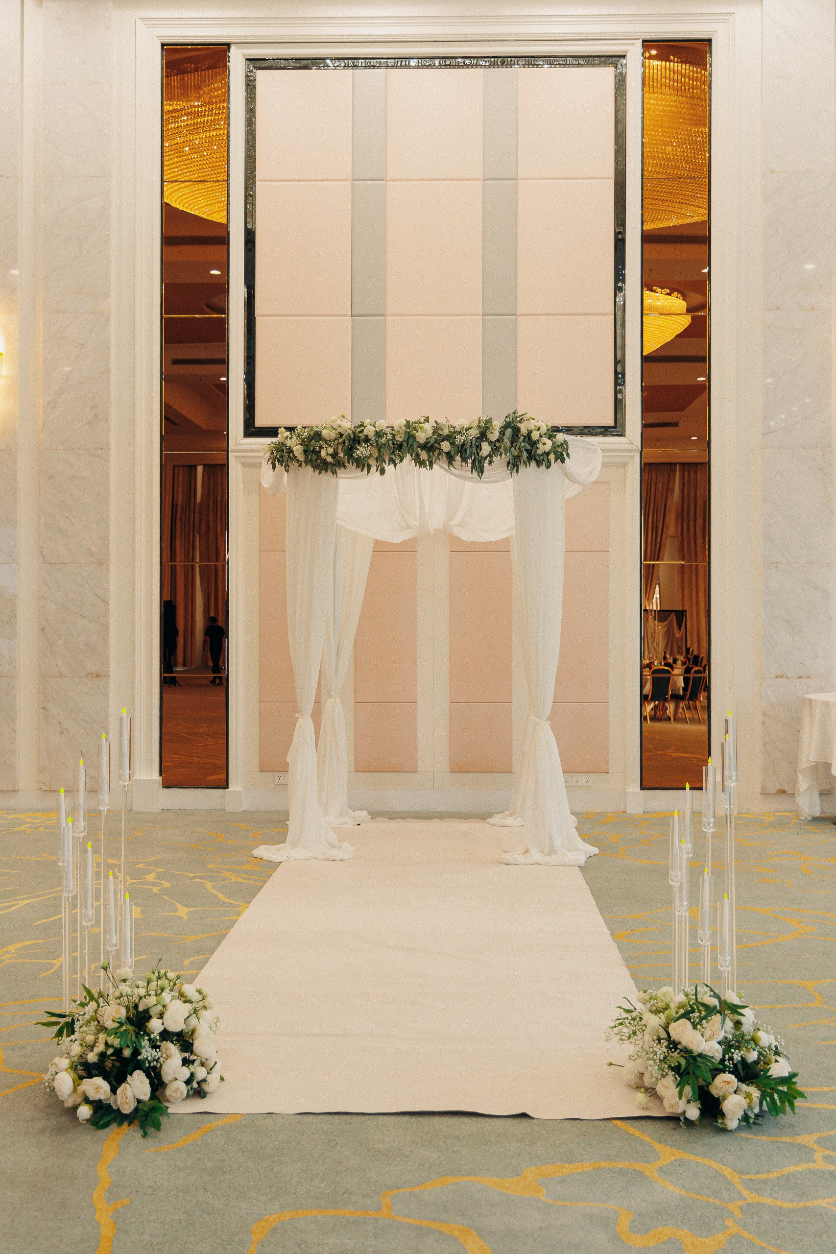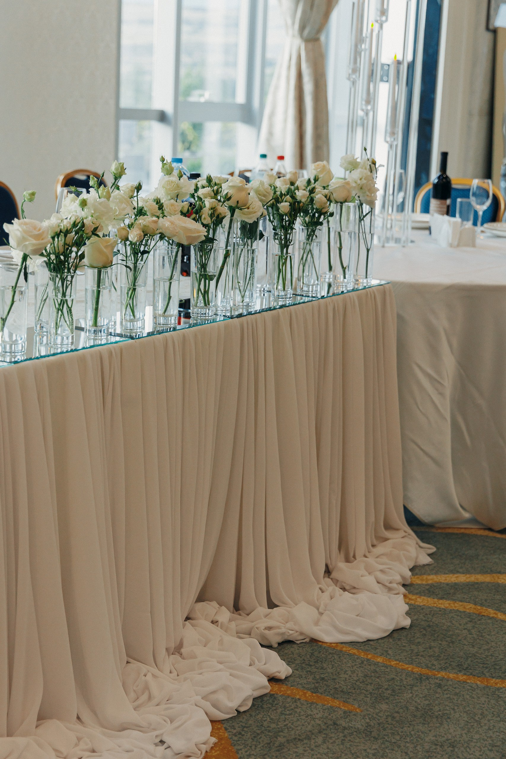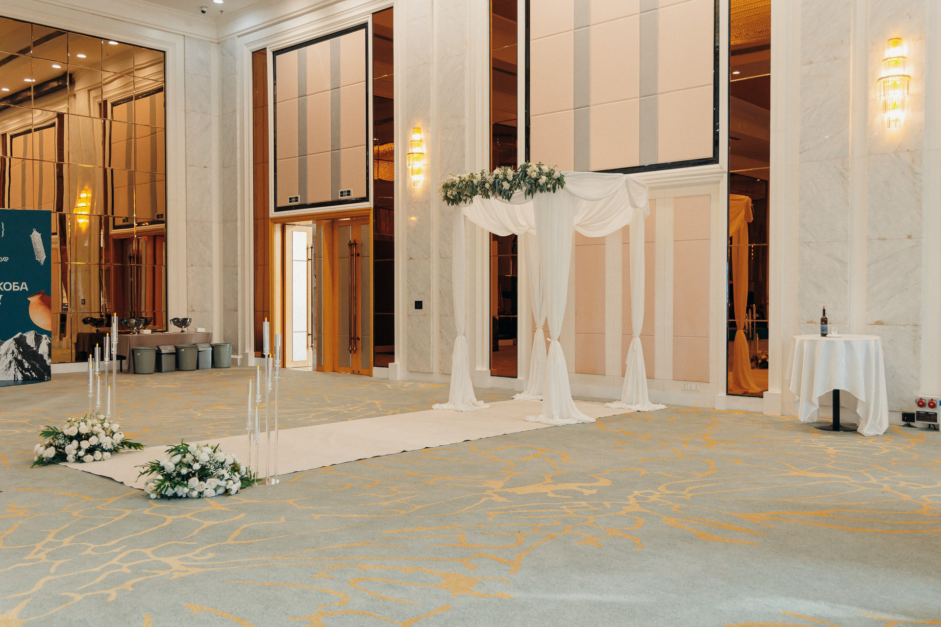 - зона проведения церемонии (подсвечники, букеты цветов, арка с цветочными элементами)